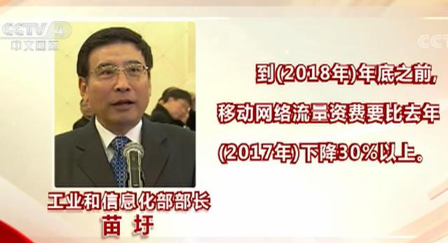 2018年3月5日的兩會“部長通道”上,工業(yè)和信息化部部長苗圩表示,到(2018年)年底之前,移動網(wǎng)絡(luò)流量資費要比去年(2017年)下降30%以上。