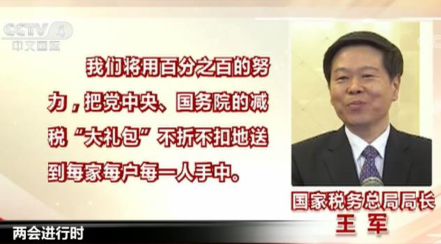在2018年3月13日的兩會(huì)部長(zhǎng)通道上,國(guó)家稅務(wù)總局局長(zhǎng)王軍表示,我們將用百分之百的努力,把黨中央、國(guó)務(wù)院的減稅“大禮包”不折不扣地送到每家每戶每一人手中。