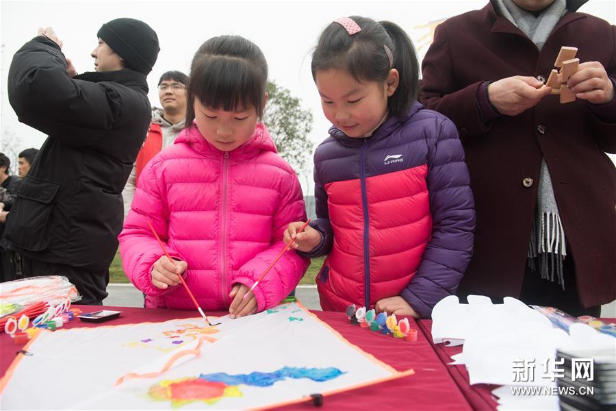 3月3日,小朋友在菰城村畫紙鳶。 新華社記者翁忻旸/攝