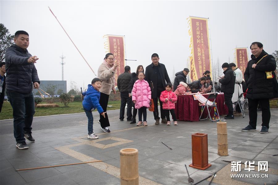 3月3日,游客在菰城村體驗投壺游戲。新華社記者翁忻旸/攝