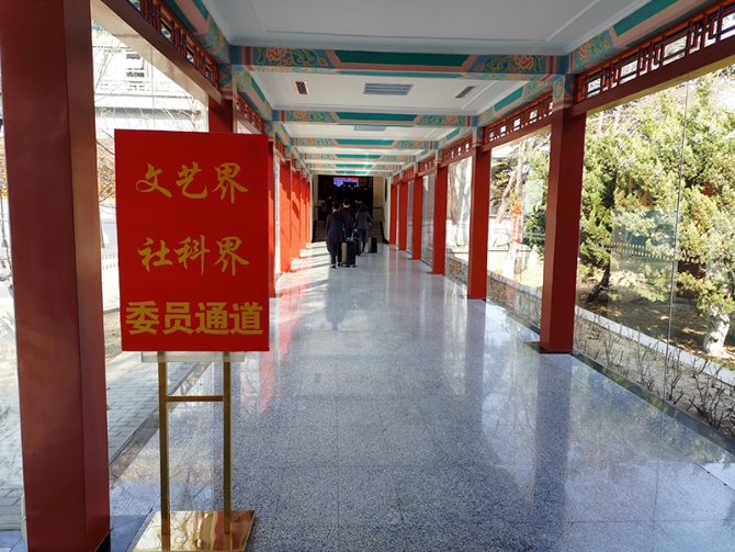 △委員前往會(huì)場(chǎng)的通道。(央視記者張曉鵬拍攝)