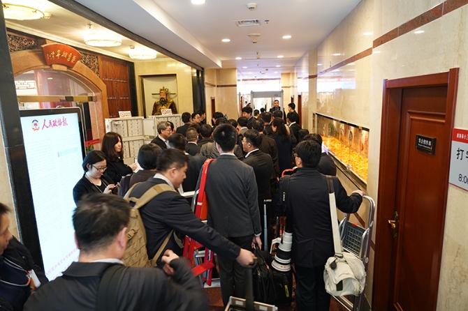 △等待入場(chǎng)的媒體記者。(央視記者彭漢明拍攝)