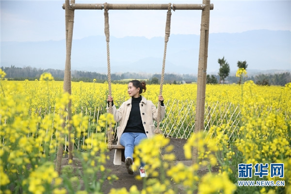 油菜花海成為了當?shù)匕l(fā)展生態(tài)旅游、鄉(xiāng)村旅游、促進農(nóng)旅融合的自然資源。 新華網(wǎng)發(fā) 劉正凡/攝