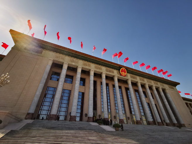 下午兩點(diǎn)的人民大會堂東門外。雖是早春,北京的氣溫已經(jīng)攀升到近20度。(央視記者張曉鵬拍攝)