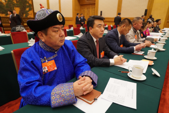 下午三點(diǎn),內(nèi)蒙古代表團(tuán)全體會議開始。八位代表先后發(fā)言。