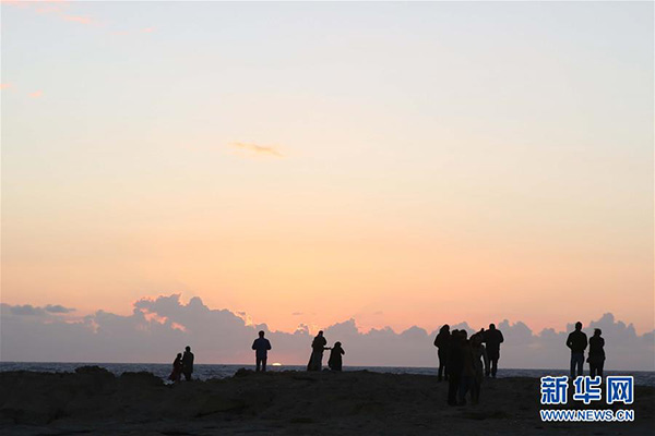 3月3日,在馬耳他戈佐島,游人在“藍窗”舊址欣賞落日美景。 2017年3月8日,由于大風引起巨浪沖刷,位于馬耳他第二大島戈佐島西北角的著名景點“藍窗”坍塌?!八{窗”坍塌以后,其舊址風光依然吸引著一些游客。 新華社記者 袁韻/攝