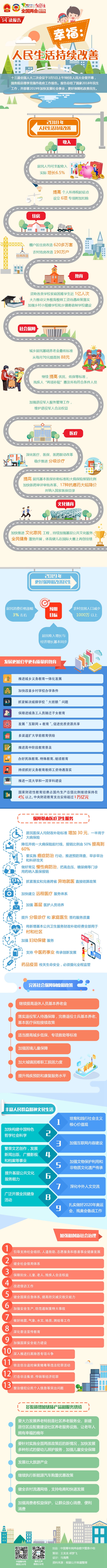十三屆全國人大二次會議于3月5日上午9時在人民大會堂開幕,國務(wù)院總理李克強作政府工作報告。報告總結(jié)了國家2018年民生工作,并部署2019年加快發(fā)展社會事業(yè),更好保障和改善民生。