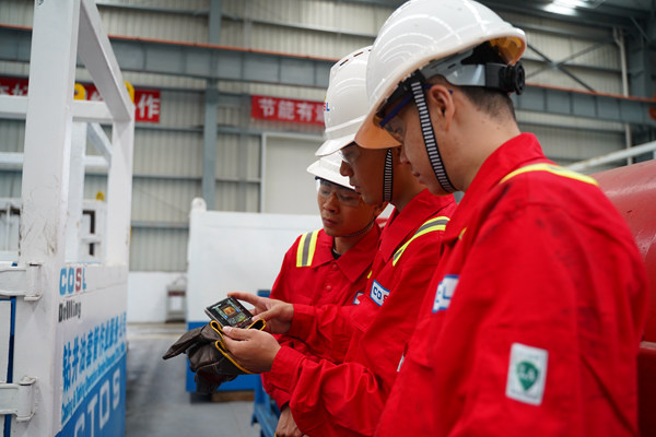 中國(guó)海油中海油服深圳分公司一線(xiàn)員工工作間隙通過(guò)手機(jī)直播收聽(tīng)政府工作報(bào)告
