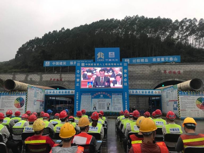 中國(guó)鐵建所屬中鐵十四局援阿富汗國(guó)家職業(yè)技術(shù)學(xué)院項(xiàng)目員工在建設(shè)工地收看兩會(huì)直播