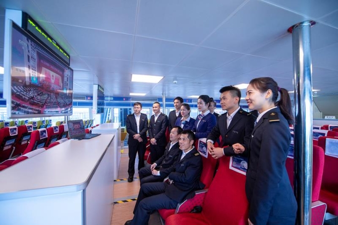 招商局旗下郵輪中心高速快船船員收聽(tīng)收看兩會(huì)開(kāi)幕會(huì)