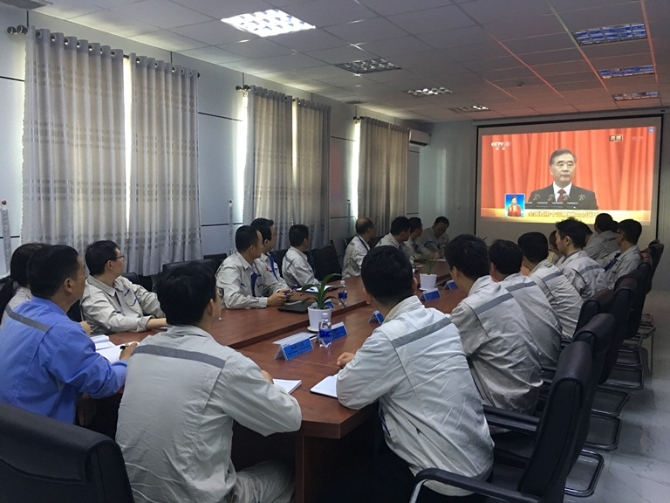 中國五礦所屬中國二十二冶崇建公司積極收聽收看兩會盛況