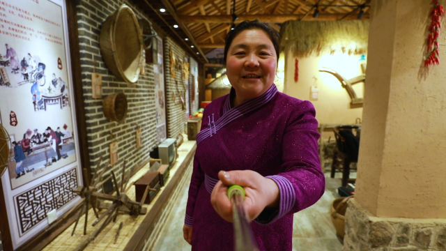趙會(huì)杰在村里的民俗博物館自拍錄視頻,展示保留下來的老物件。新華社發(fā)(視頻截圖)