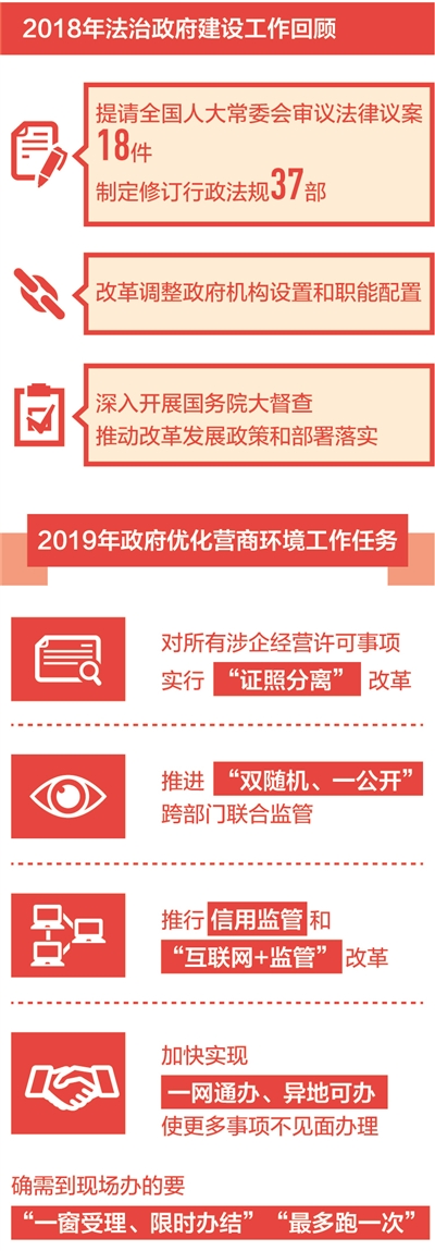 習(xí)近平總書記在黨的十九大報告中指出,要建設(shè)法治政府,推進(jìn)依法行政,嚴(yán)格規(guī)范公正文明執(zhí)法。政府工作報告中,許多法治關(guān)鍵詞折射出法治政府建設(shè)的堅實步伐。代表委員們認(rèn)為,依法行政、加強公正監(jiān)管、創(chuàng)新社會治理,為營造良好經(jīng)濟社會環(huán)境提供有力保障。