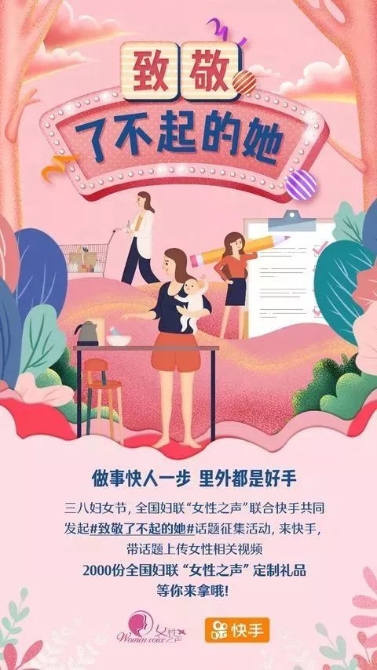 “女性之聲”聯(lián)合快手發(fā)起#致敬了不起的她#有獎話題活動,還開發(fā)了三八節(jié)專用魔法表情包。