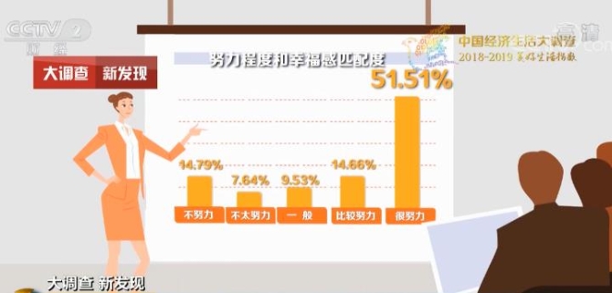 另外,如果每天能有一個(gè)小時(shí)以上的時(shí)間用來(lái)健身或者欣賞歌舞,那么幸福感也會(huì)直線上升。當(dāng)然僅僅有錢和有閑還不夠,努力的程度和幸福感指數(shù)是完美重合,感覺(jué)自己工作很努力的人幸福感指數(shù)達(dá)到了51.51%,看來(lái)對(duì)于勤奮的中國(guó)人來(lái)說(shuō),“愛(ài)拼”才會(huì)更幸福。