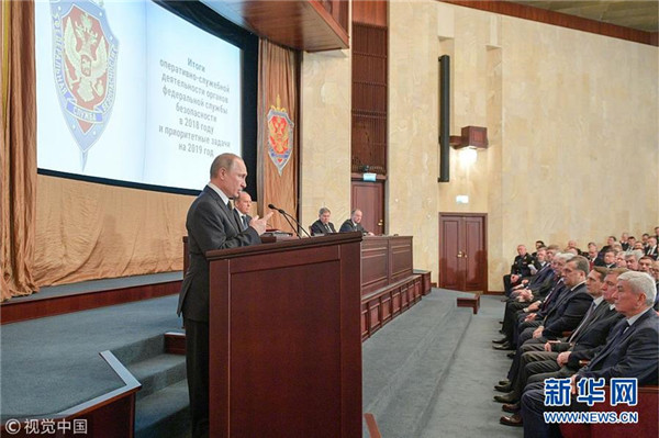 當(dāng)?shù)貢r間2019年3月6日,俄羅斯莫斯科,俄羅斯總統(tǒng)普京出席聯(lián)邦安全局會議。 (圖片來源:視覺中國)