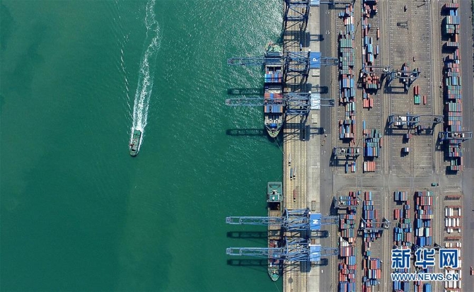 ?貨輪??吭谔旖蚋郾苯蹍^(qū)(2017年4月21日無(wú)人機(jī)拍攝)。新華社 記者岳月偉/攝
