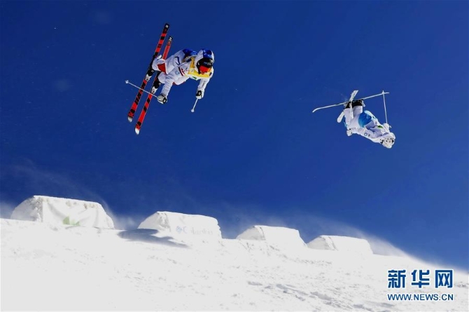 ?運(yùn)動(dòng)員在河北張家口市崇禮區(qū)太舞滑雪場(chǎng)參加自由式滑雪雪上技巧世界杯比賽(2018年12月16日攝)。新華社 記者楊世堯/攝
