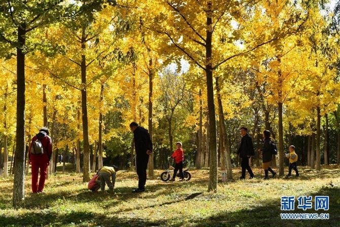 ?游客在北京通州大運(yùn)河森林公園游玩(2018年10月27日攝)。2016年,通州被賦予新的歷史定位——北京城市副中心,迎來(lái)歷史性發(fā)展機(jī)遇。新華社 記者羅曉光/攝