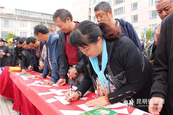昆明信息港訊 記者栗飛 通訊員姜韜 3月8日,陽(yáng)宗海2019年掃黑除惡專項(xiàng)斗爭(zhēng)主題宣傳活動(dòng)在湯池街道姜湯小區(qū)舉行。全區(qū)所有鎮(zhèn)街、各部局辦干部和群眾參加了活動(dòng),逾百人簽名支持和參與掃黑除惡專項(xiàng)斗爭(zhēng)。
