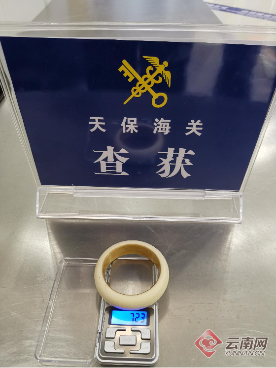 ?記者3月8日從昆明海關(guān)獲悉,3月7日,天保海關(guān)關(guān)員在天??诎冬F(xiàn)場查獲1名越南籍駕駛員攜帶的象牙手鐲1只,凈重72.3克。