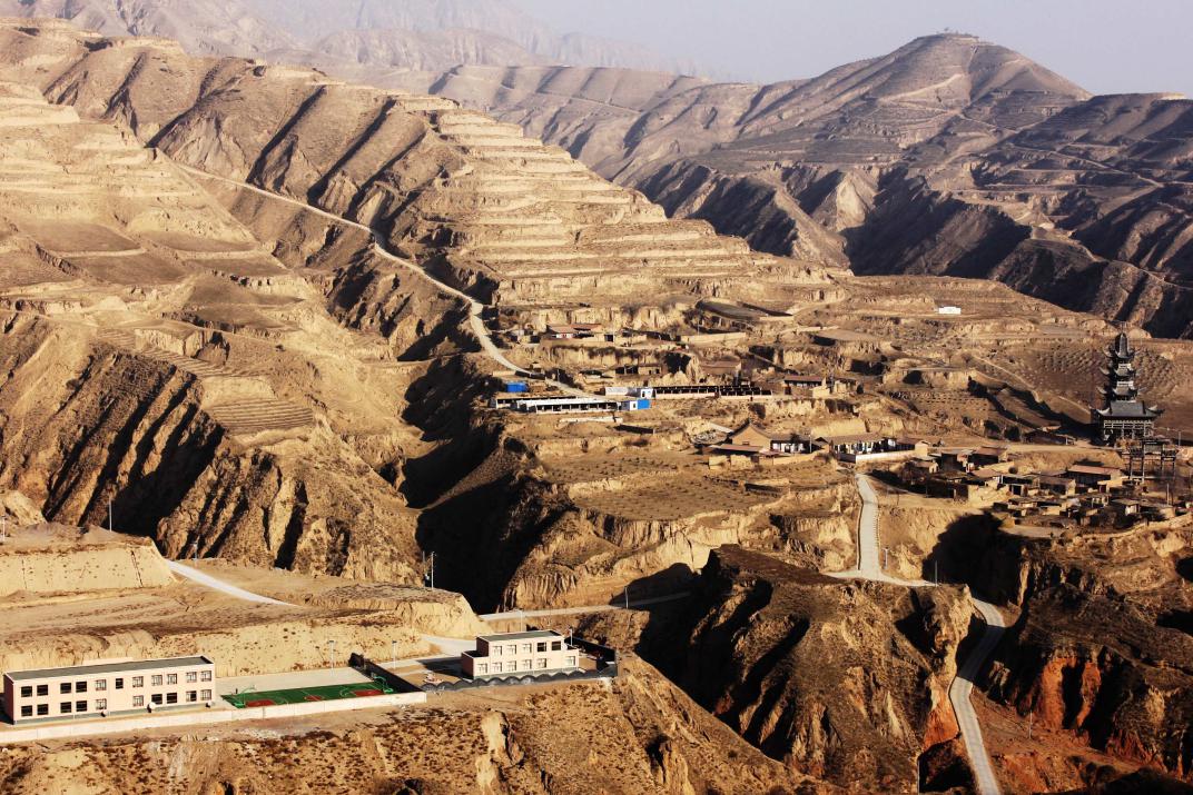 這是甘肅省臨夏回族自治州東鄉(xiāng)族自治縣布楞溝村地形景貌(2015年2月14日攝)。