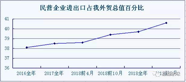 2018年前10個月,民營企業(yè)進(jìn)出口9.88萬億元,增長14.6%,占我外貿(mào)總值的39.4%,比去年同期提升1.1個百分點(diǎn)。
