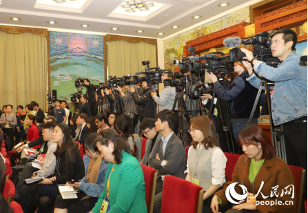 西藏代表團開放日吸引眾多媒體。(人民網(wǎng)記者吳超 攝)