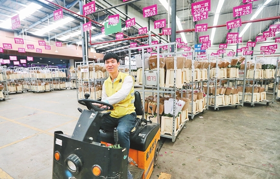 在昆明斗南花卉電子交易拍賣中心,一批批鮮花通過標(biāo)準(zhǔn)化作業(yè)銷往世界各地。云南日報 記者楊崢/攝