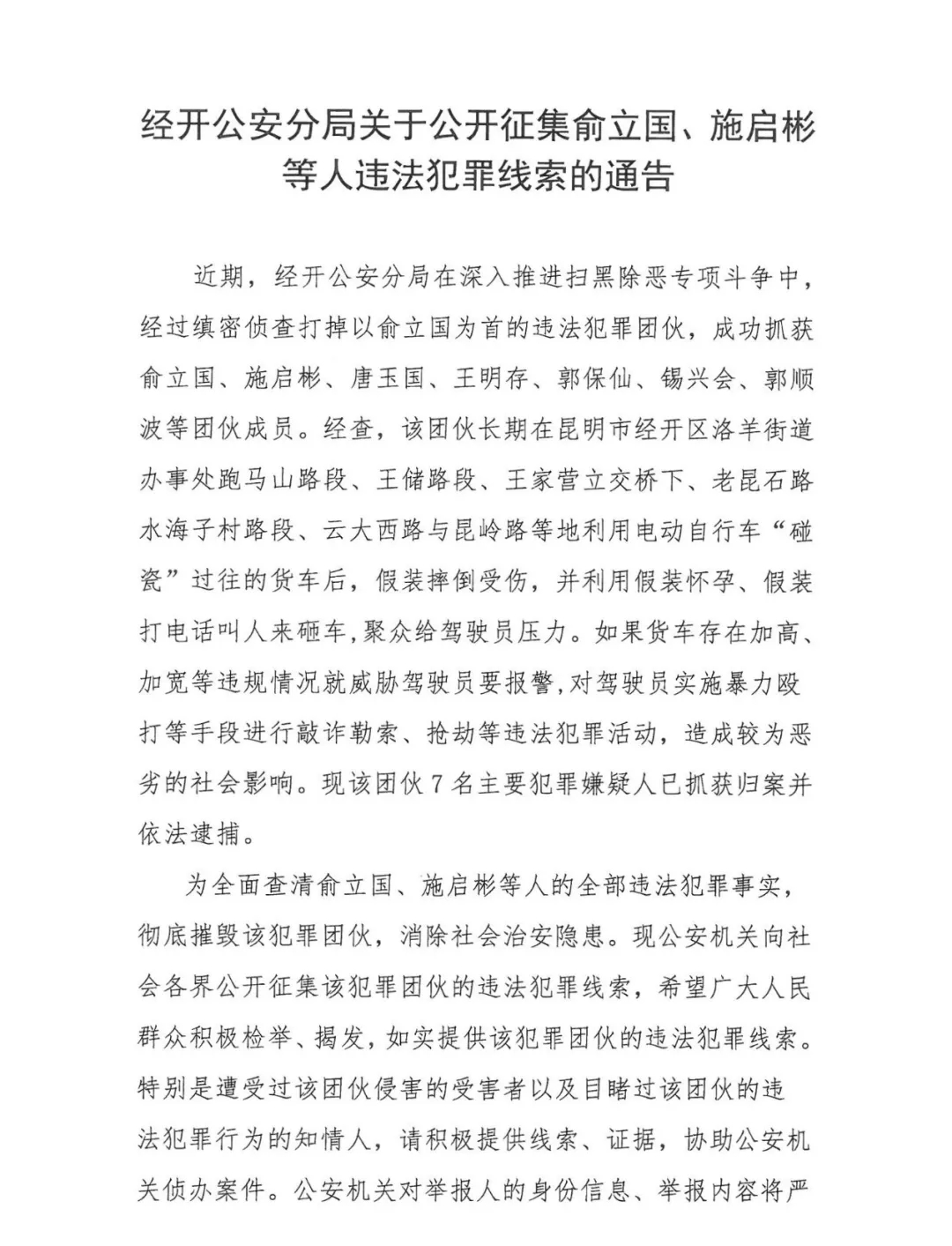 并按照云南省公安廳、昆明市公安局