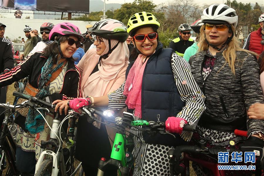 ?3月8日,在巴基斯坦伊斯蘭堡,人們騎車參加活動(dòng)慶?!叭恕眹?guó)際婦女節(jié)。 新華社發(fā)(艾哈邁德·卡邁勒/攝)