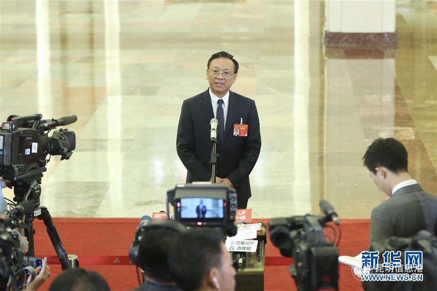 ?3月12日,十三屆全國人大二次會議在北京人民大會堂舉行第三次全體會議。這是最高人民法院副院長江必新在“部長通道”接受采訪。 新華社記者 殷剛 攝