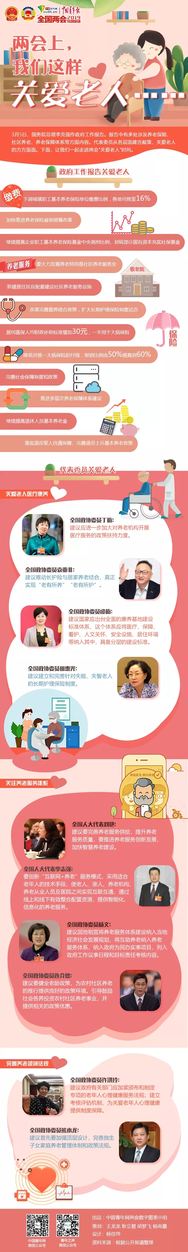 3月5日,國務(wù)院總理李克強(qiáng)作政府工作報告。報告中有多處涉及養(yǎng)老保險、社區(qū)養(yǎng)老、養(yǎng)老保障體系等方面內(nèi)容。代表委員從各層面建言獻(xiàn)策,關(guān)愛老人的方方面面。下面,讓我們一起走進(jìn)兩會“關(guān)愛老人”時間。