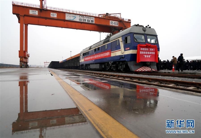 ?3月2日,中歐班列(鄭州)“菜鳥號”列車在中鐵聯(lián)集鄭州中心站等候發(fā)車。新華社 記者李安/攝