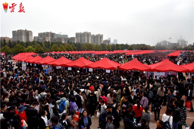 3月14日,云南省2019 年公費師范畢業(yè)生專場雙向選擇供需洽談會暨 2019屆師范類高校畢業(yè)生雙向選擇洽談會在云南師范大學(xué)呈貢主校區(qū)舉行,來自省內(nèi)外953家用人單位為畢業(yè)生提供近30000個崗位,吸引近40000名畢業(yè)生到會求職。