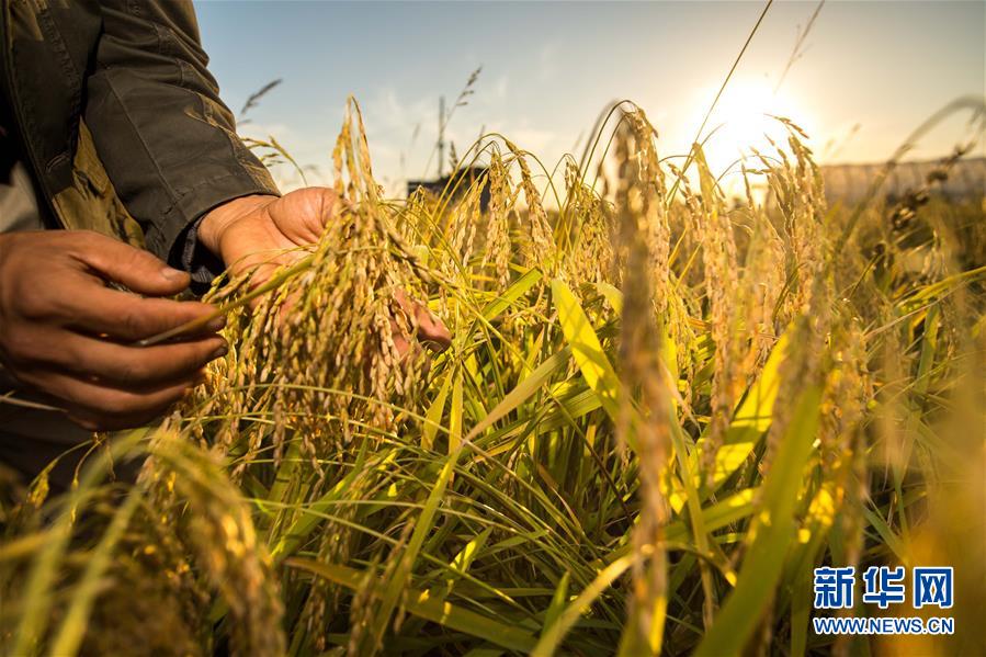 在吉林省舒蘭市平安鎮(zhèn),農(nóng)民在稻田間觀察稻穗灌漿情況(2018年9月18日攝)。新華社 記者許暢/攝