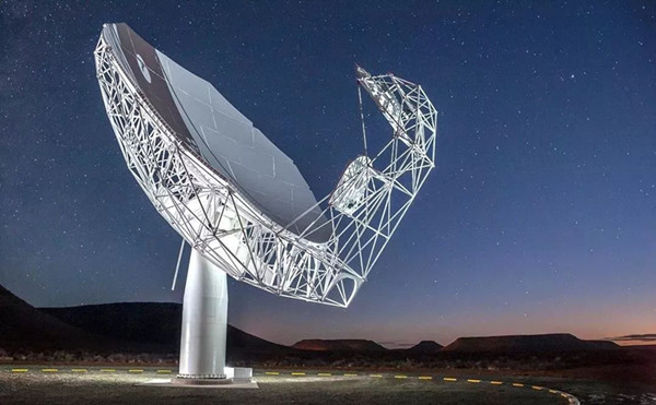 圖為南非MeerKAT望遠(yuǎn)鏡,其全部陣列由64座射電望遠(yuǎn)鏡組成,該望遠(yuǎn)鏡將被集成到平方公里陣列(SKA)——世界上最強大的射電望遠(yuǎn)鏡。
