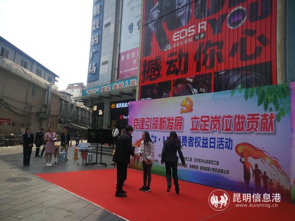 昆明信息港訊 記者李紅鸞 立足2019年消費維權(quán)年“信用讓消費更放心”的主題,3月15日,由五華區(qū)“兩新”組織黨工委、五華區(qū)華山街道黨工委主辦,華山市場監(jiān)管所、圓通西路社區(qū)、佰騰數(shù)碼廣場、昆明威豪計算機(jī)有限公司共同協(xié)辦的“3·15”消費者權(quán)益日活動在佰騰數(shù)碼廣場開展。