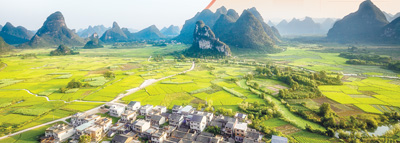 廣西桂林會(huì)仙鎮(zhèn)田園景觀。人民視覺