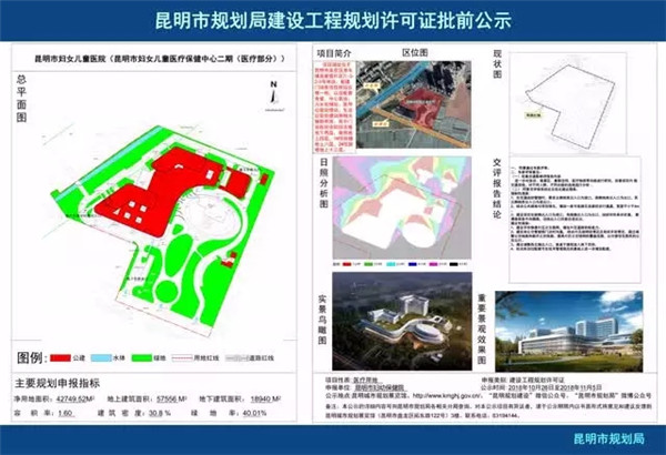 據(jù)昆明市規(guī)劃局官網(wǎng)公告的《昆明市規(guī)劃局對(duì)昆明市婦幼保健院建設(shè)項(xiàng)目行政審批公示》顯示: