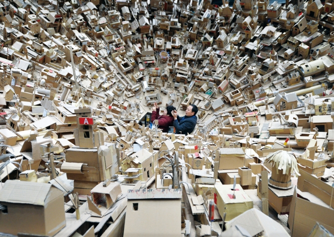 2018年12月27日—28日,第六屆中國(guó)新興媒體產(chǎn)業(yè)融合發(fā)展大會(huì)在成都舉行,與會(huì)代表來(lái)到成都東郊記憶館參觀。圖為代表們參觀蓬皮杜藝術(shù)中心雙年展。 紅星新聞 陶軻/視覺(jué)中國(guó)