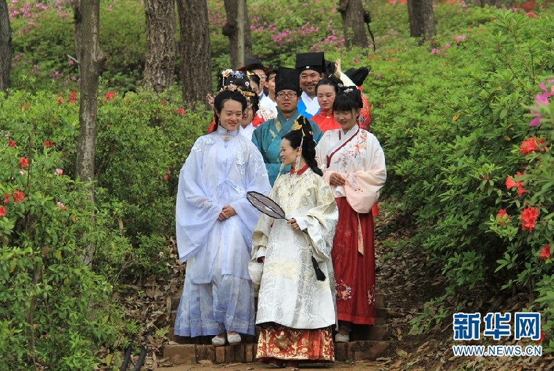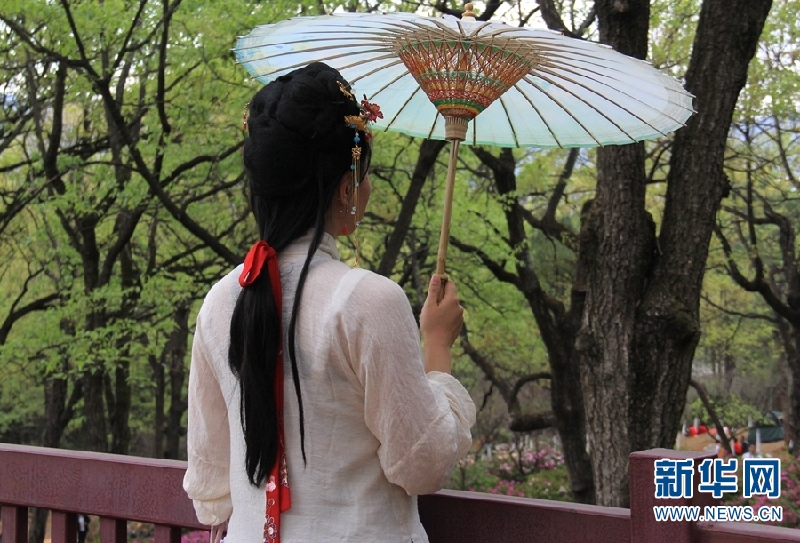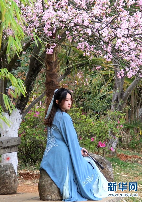 花紅柳綠春意濃,漢服佳人入畫來。(新華網(wǎng) 念新洪/攝)