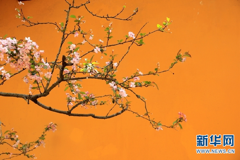 昆明黑龍?zhí)豆珗@內(nèi)盛放的海棠花。(新華網(wǎng) 念新洪/攝)