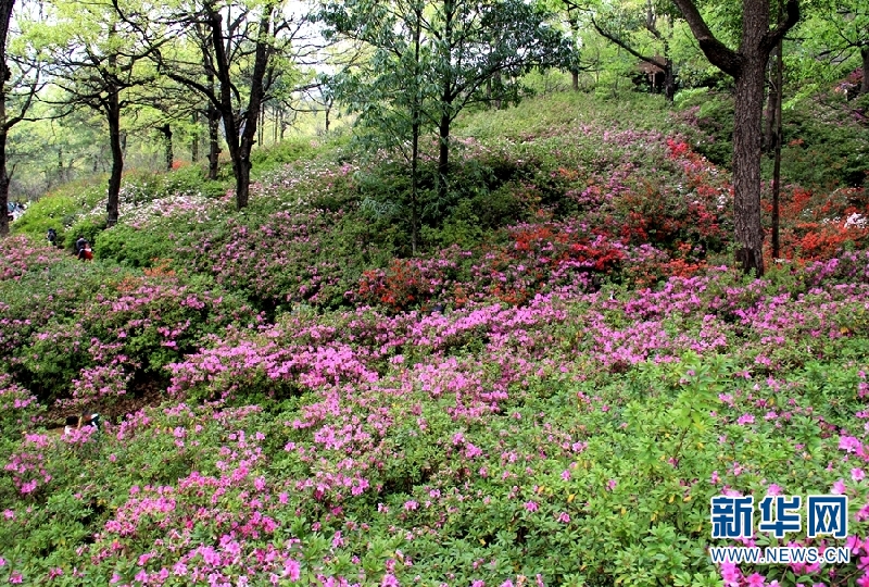 昆明黑龍?zhí)豆珗@內(nèi)盛放的杜鵑花。(新華網(wǎng) 念新洪/攝)