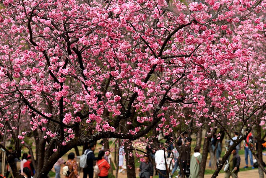 游人在昆明圓通山公園觀賞盛開的櫻花(3月16日攝)。近日,云南省昆明市迎來櫻花盛開的時節(jié)。昆明圓通山公園的數(shù)千株櫻花燦爛綻放,吸引了市民和游客前來觀花賞景。新華社記者 藺以光/攝