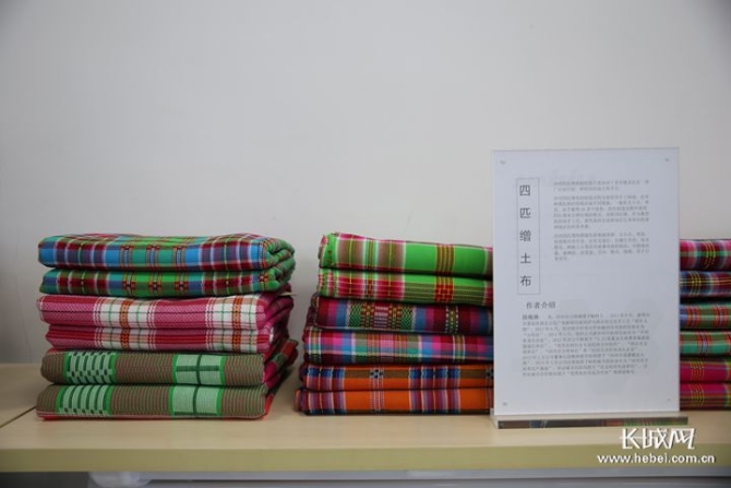 本次座談會(huì)以“匠心筑夢(mèng)”為主題,現(xiàn)場(chǎng)展出的非遺項(xiàng)目作品包括木板烙畫、桔桿工藝、葫蘆燙畫、茶雕、布糊畫、皮貼畫、農(nóng)民畫、鐵板浮雕、四匹繒土布、石粉畫、布藝、文彩繡、剪紙、定瓷、木板年畫、繩編、青銅制作工藝、泥塑等。