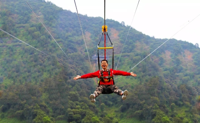 從游客和記者的體驗感受,滑索有著較好的安全保護措施,行駛平穩(wěn),但由于有一定的速度感和落差感,所以滑行過程中感覺刺激。