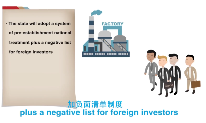 這部剛剛通過的《外商投資法》共分為六章,與之前最大不同就是采用了準(zhǔn)入前國民待遇加負(fù)面清單管理制度。用西班牙的一句方言概括就是“你家就是我家”。這樣在中國設(shè)立建廠的外國企業(yè),只要投資的領(lǐng)域不是在負(fù)面清單上,就可以享受與中國投資者同等的待遇。