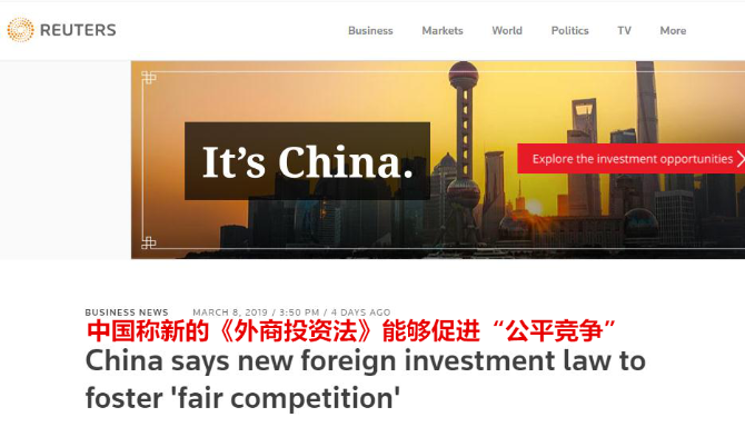將于2020年1月1日起施行的《外商投資》法彰顯了中國擴大開放的決心,國外媒體紛紛予以關(guān)注: