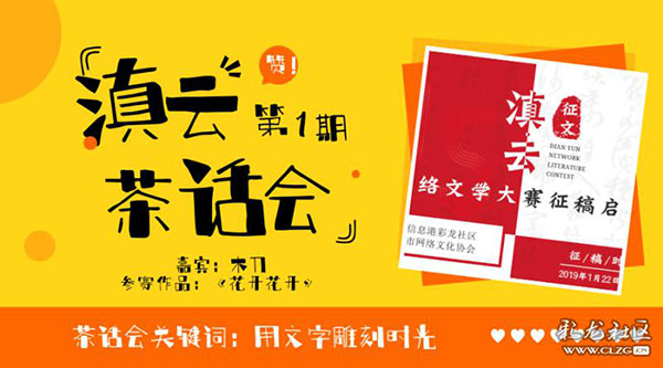 近日,組委會(huì)在彩龍社區(qū)推出了“滇云文苑”及“滇云茶話會(huì)”兩個(gè)欄目?!暗嵩莆脑贰庇糜谧髡呙熳运],向讀者推介自己的作品?!暗嵩撇柙挄?huì)”則以文字訪談的形式,展示作者的創(chuàng)作心得,分享自己的寫作經(jīng)驗(yàn),拉近讀者與作者的距離,形成創(chuàng)新型的“互動(dòng)式寫作”。